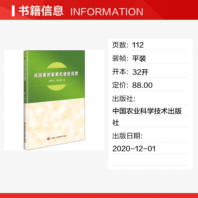 养殖专业科技 社 陈继兰 中国农业科学技术出版 图书籍 新华书店正版 畜牧 著 李云雷 调控 光因素对家禽机能