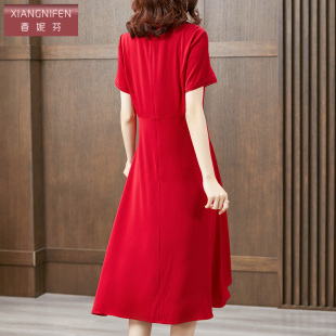 菲梦伊红色亮片连衣裙女夏装 轻奢高贵设计感收腰露肩鱼尾礼服裙子