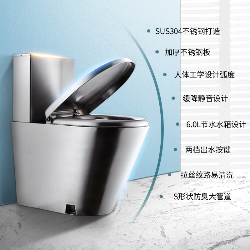 厕所不锈钢马桶家用卫生间落地式 座便器防臭节水坐便器防冻裂防爆
