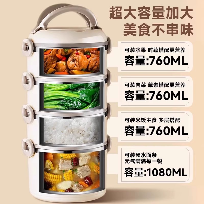 宝选多层保温饭盒上班族2025新款 微波炉加热保温提桶不锈钢便当盒