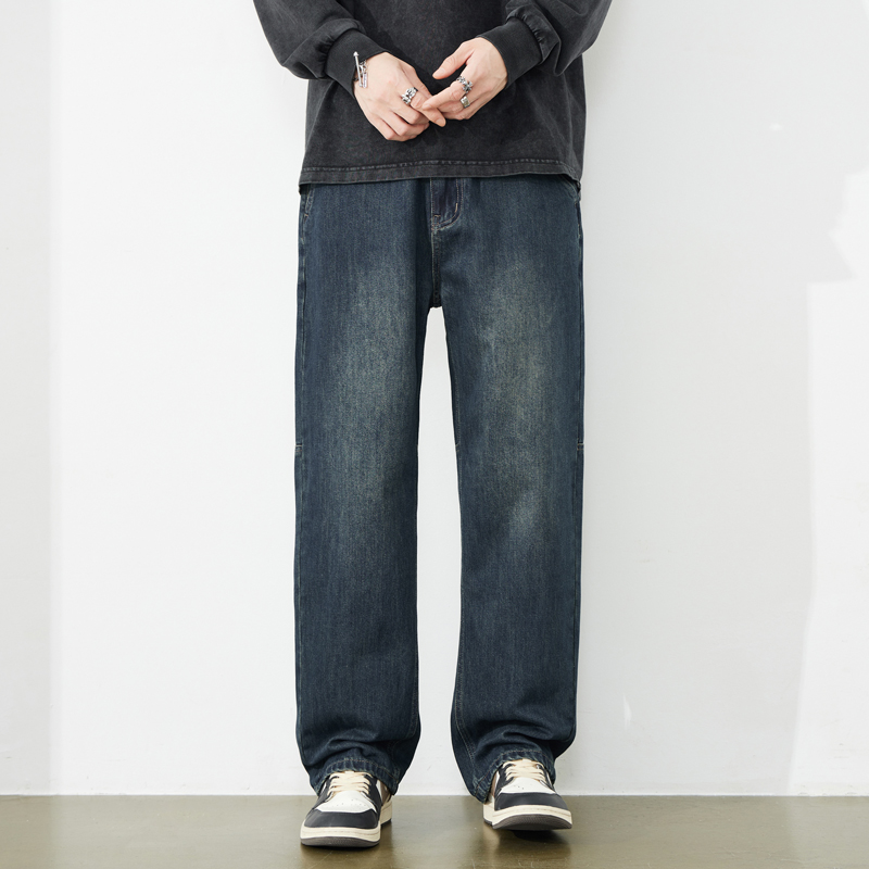 休闲裤 雅仓牛仔裤 男士 新款 子 男潮牌宽松直筒复古重工洗水阔腿秋季