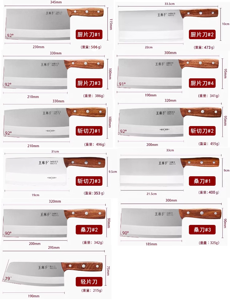 王麻子菜刀家用刀具厨房专用片肉切菜砍骨斩切锋利切丝不锈钢厨刀
