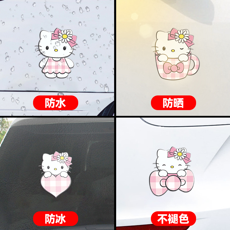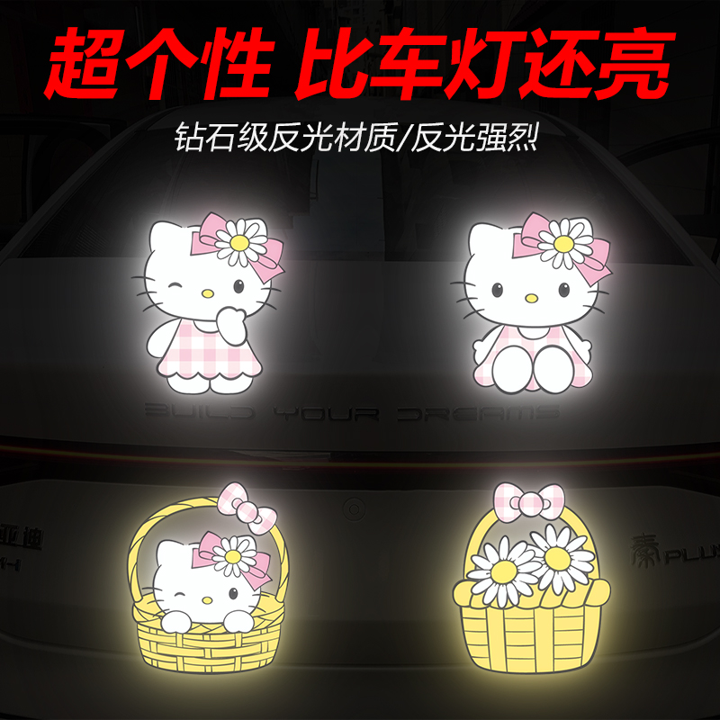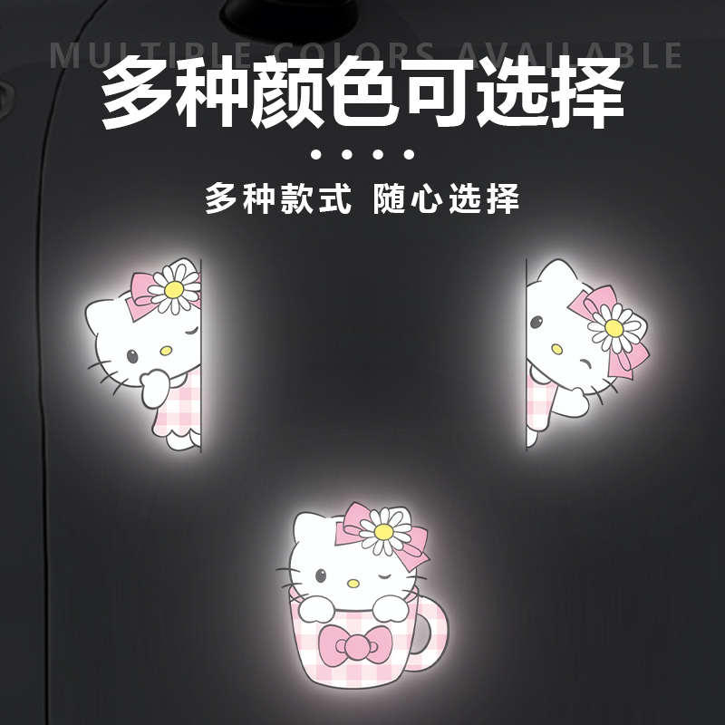 汽车电动车装 车贴纸 饰凯蒂猫反光贴纸反光警示贴车身创意遮痕个性