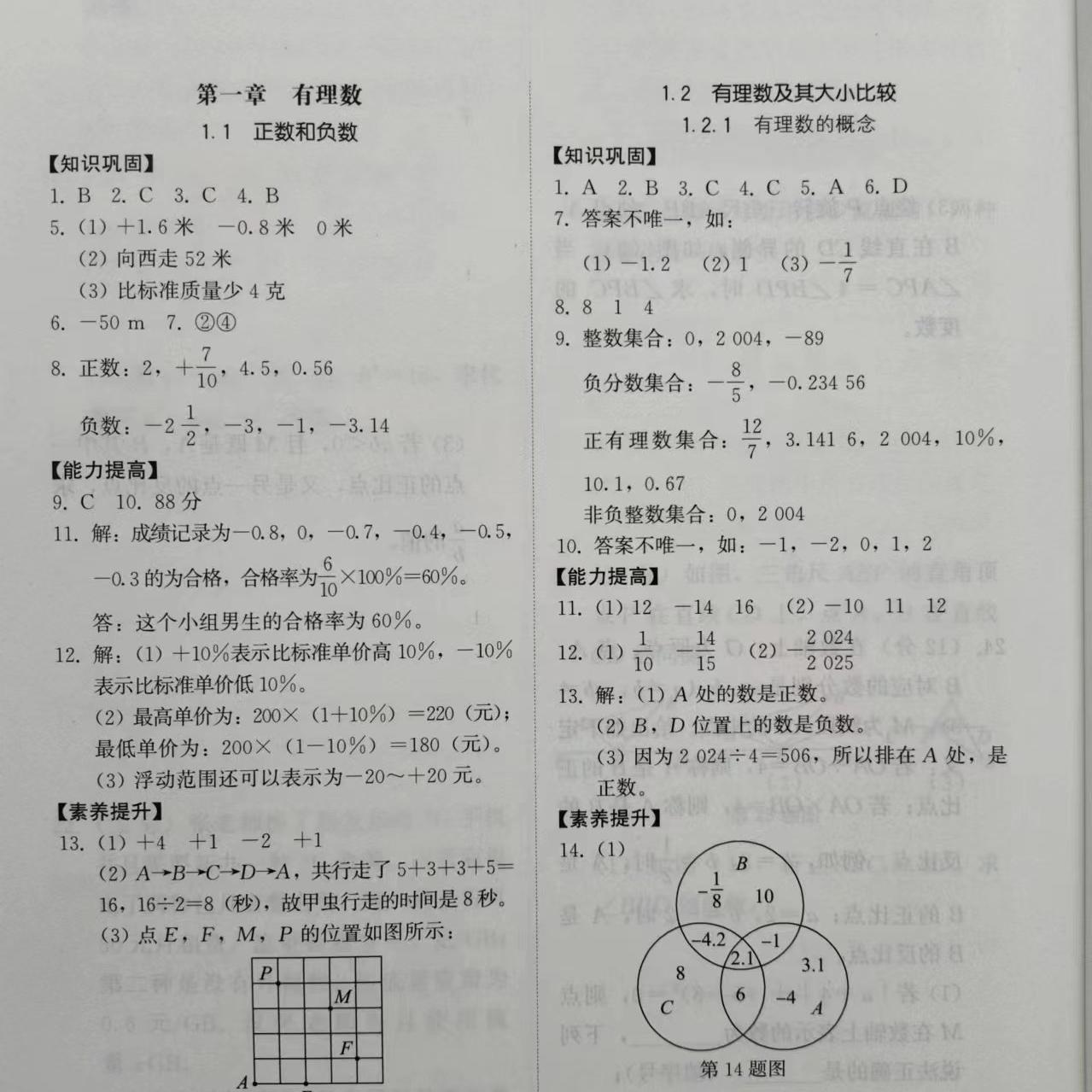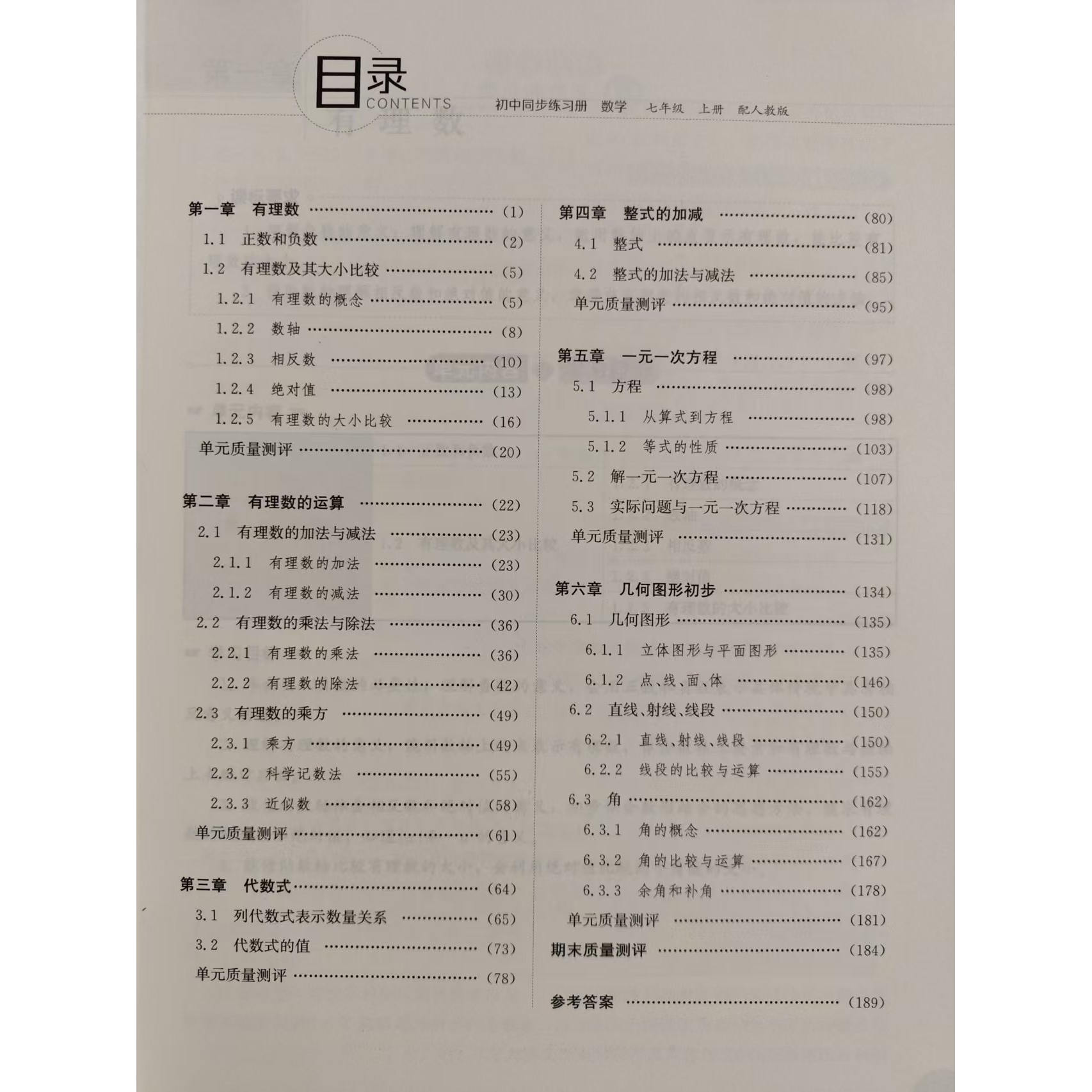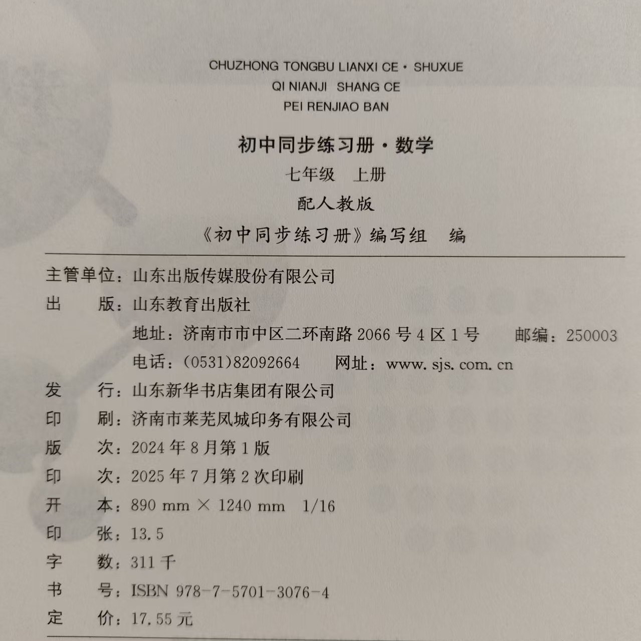 年级数学上册同步配套练习册 社初一7 2025秋配人教版 初中同步练习册数学七年级上册山东教育出版