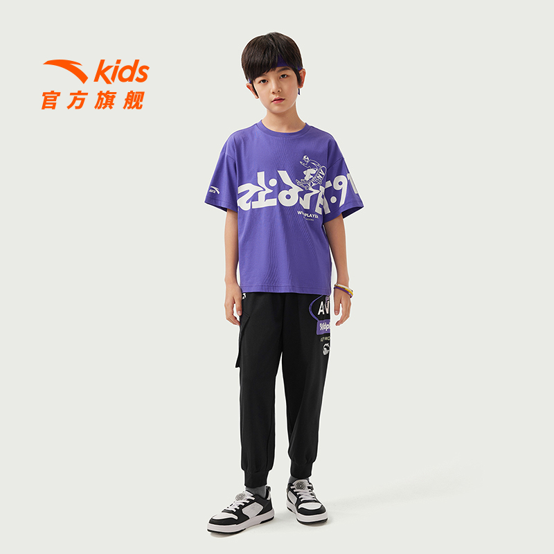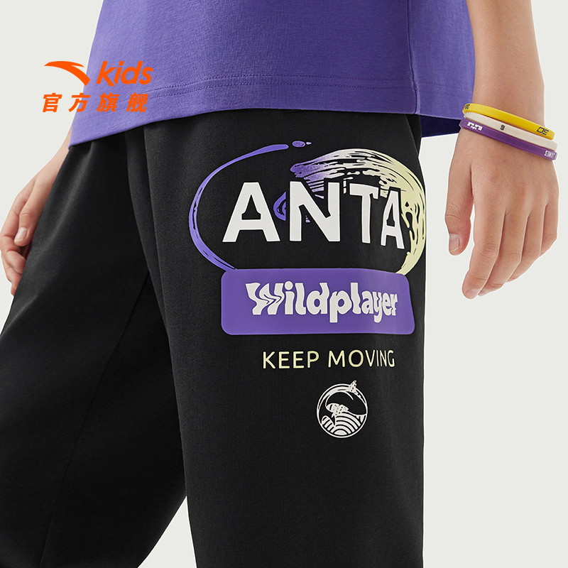 透气亲肤中大童遮阳防晒裤 安踏儿童男大童针织运动长裤 2025夏新款