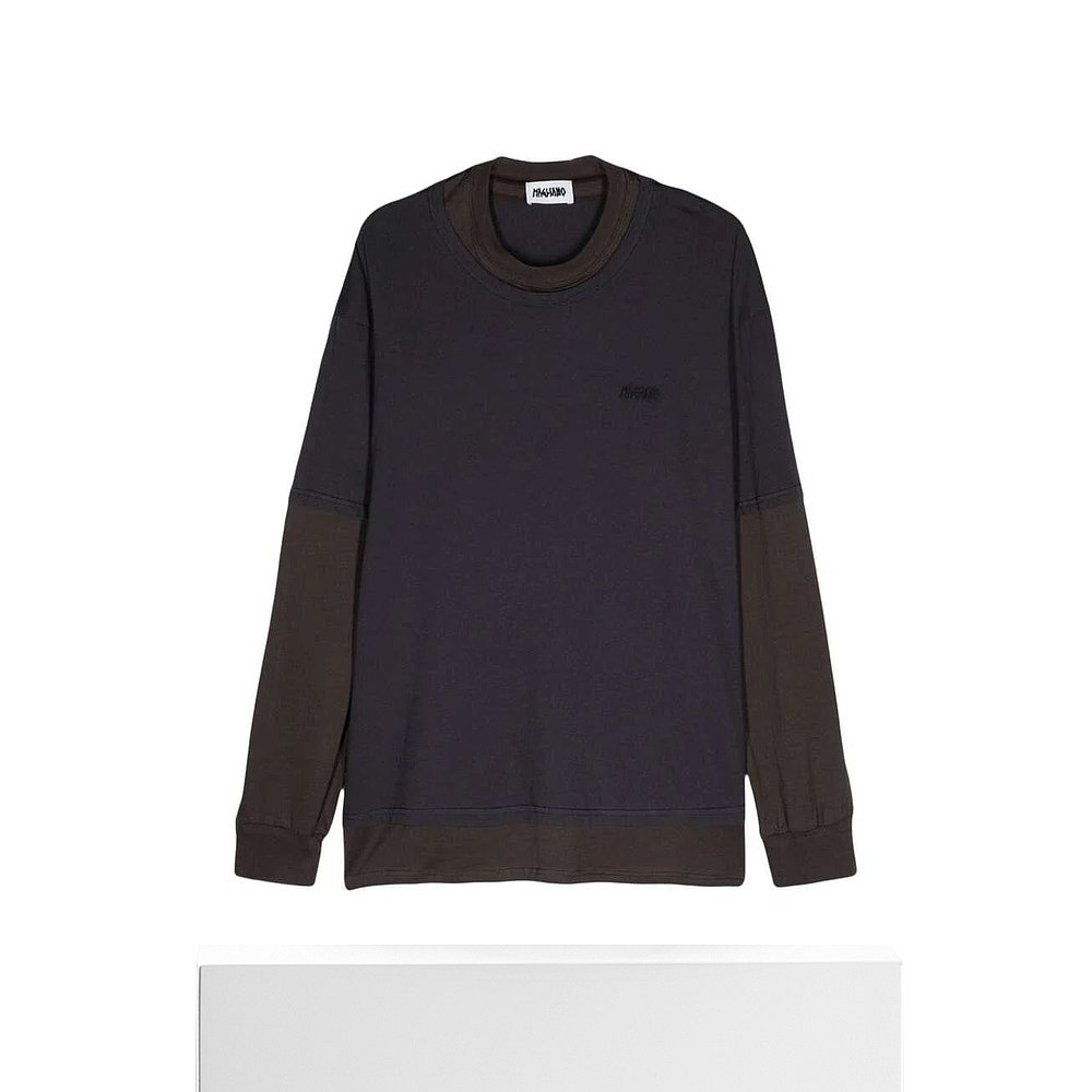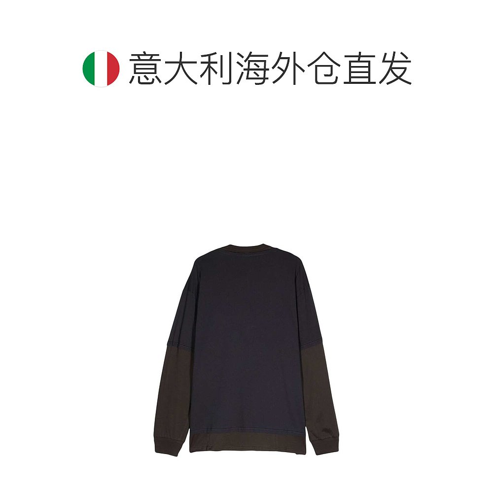 复古宽松百搭青少年休闲V领打底衫 黑色假两件圆领卫衣男秋季 美式