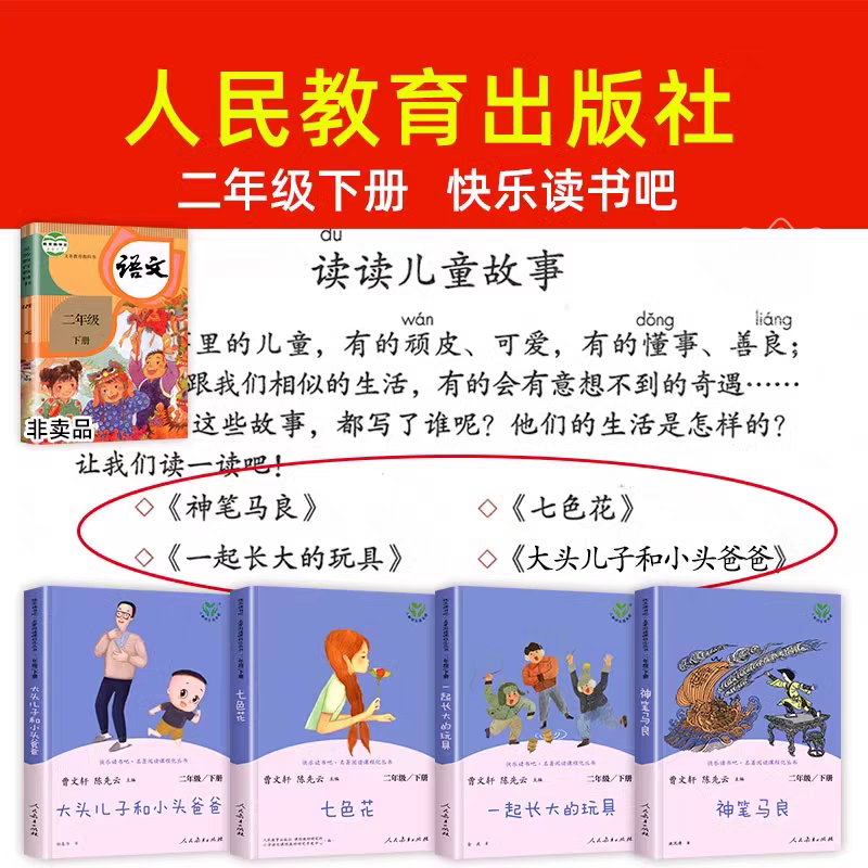 快乐读书吧二年级下册人教版 玩具神笔马良七色花大头儿子和小头爸爸小学生课外阅读书籍小学读物必读 全套4册一起长大