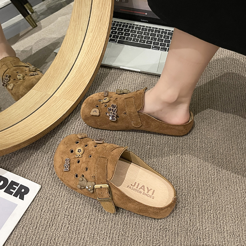真皮 一脚蹬懒人博肯鞋 春秋勃肯鞋 女包头孕妇半拖外穿2025复古新款