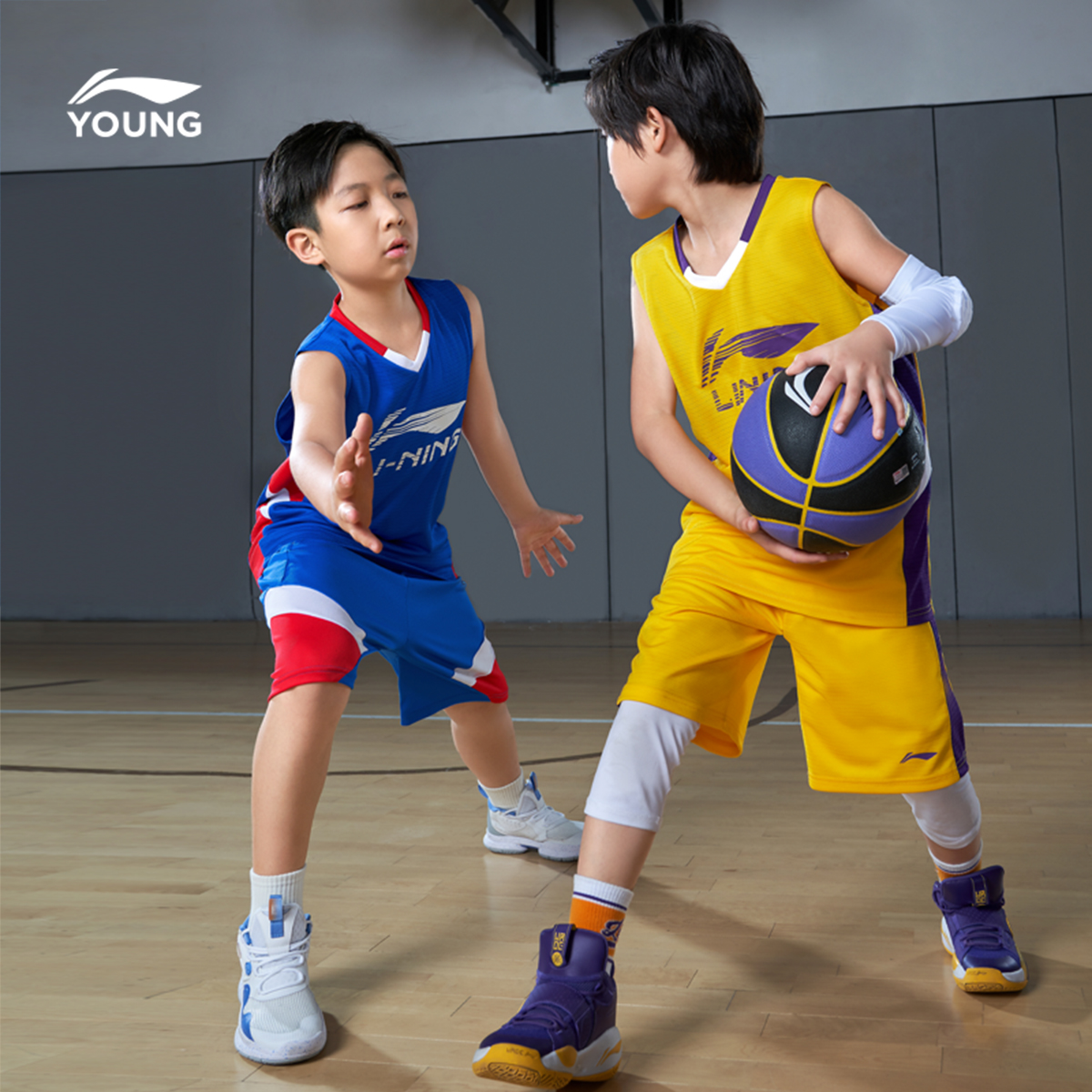 中大童运动夏装 男童装 比赛训练服2025新款 李宁儿童速干篮球服套装