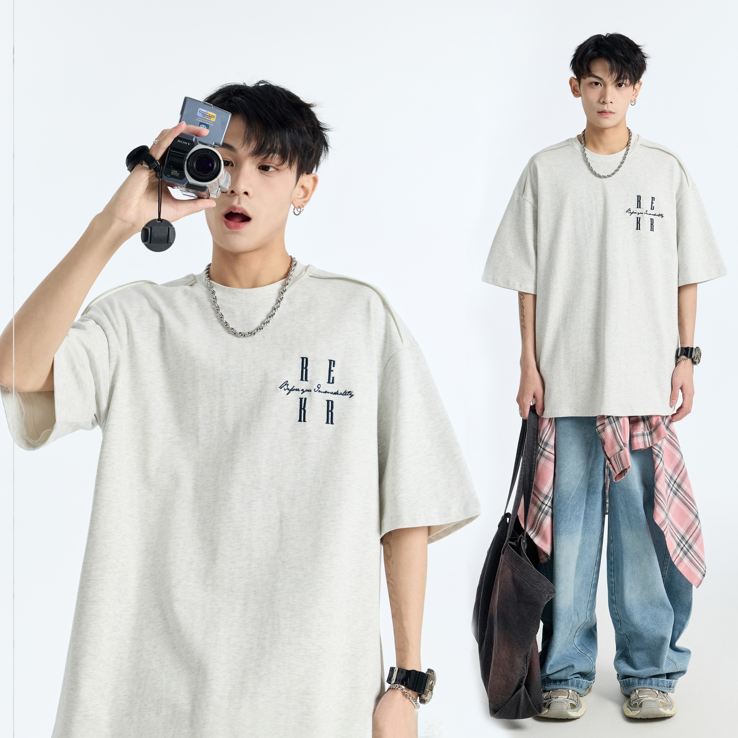 国潮小众设计感休闲正肩圆领上衣 T恤男夏季 GKKRT美式 重磅刺绣短袖