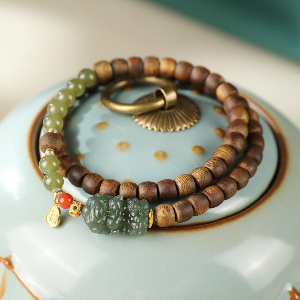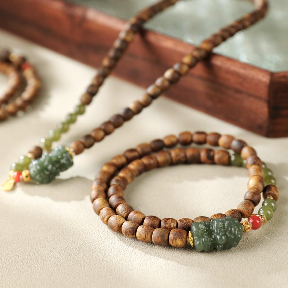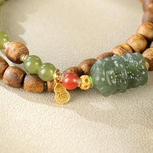 庆祥泰天然绿檀木手串沉香老山檀木质女男士 文玩檀香佛珠盘玩盘串
