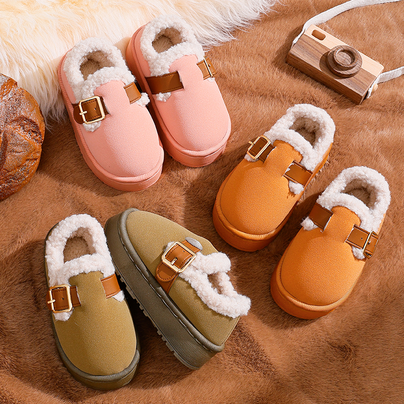 包跟防滑亲子居家外穿加绒保暖棉鞋 男女童包头棉拖鞋 2025新款 冬季