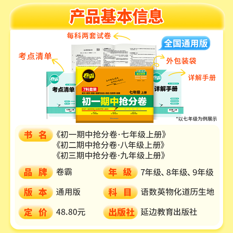 金太阳教育 试卷练习册专项冲刺 2025卷霸初一期中抢分卷语文数学英语政治道德与法治生物地理历史上下册七年级7训练册练习题人教版