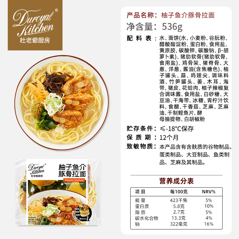 杜老爷厨房柚子鱼介豚骨拉面速食浓汤日式 任选2件 拉面 59元