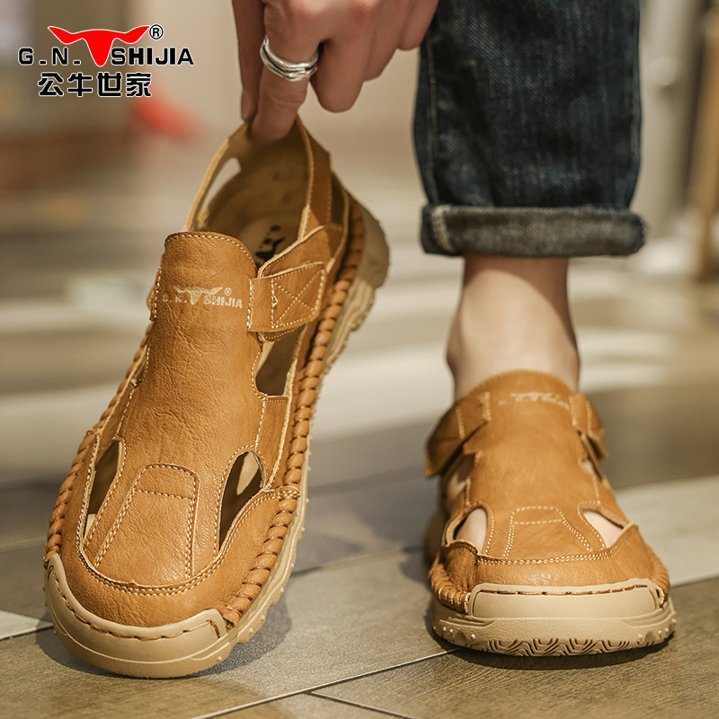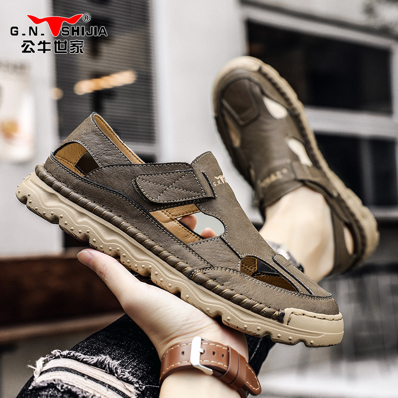 男士 外穿镂空防滑洞洞鞋 包头开车沙滩运动凉拖 男夏季 公牛世家凉鞋