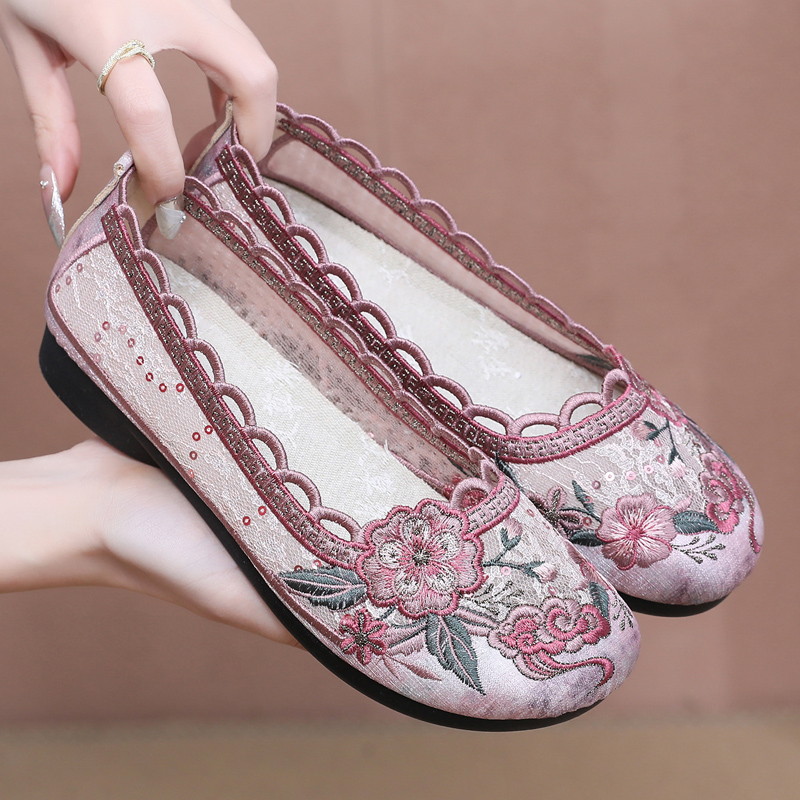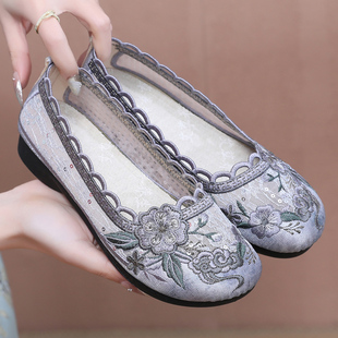 女网鞋 浅口妈妈鞋 软底老人鞋 2025夏季 网眼鞋 老北京布鞋 奶奶鞋 新款