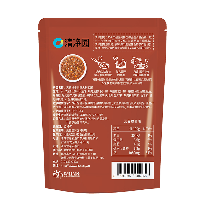 清净园黑胡椒牛肉意大利面酱意粉西餐调味拌面番茄罗勒鸡肉意面汁