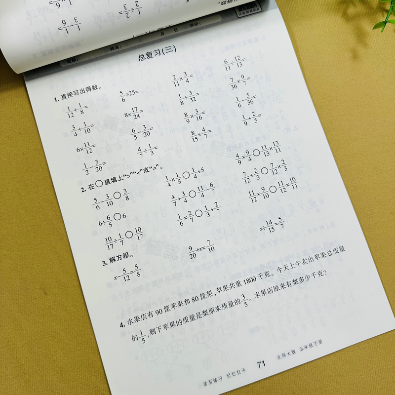 应用题卡天天练BS版 脱式 数学练习册分数加减法分数乘法除法长方体方程解决问题练习题 五年级下册数学活页专项训练口算竖式 北师大版