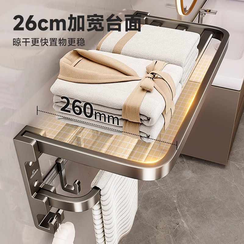 潜水艇折叠浴巾架卫生间免打孔毛巾架浴室置物架收纳架