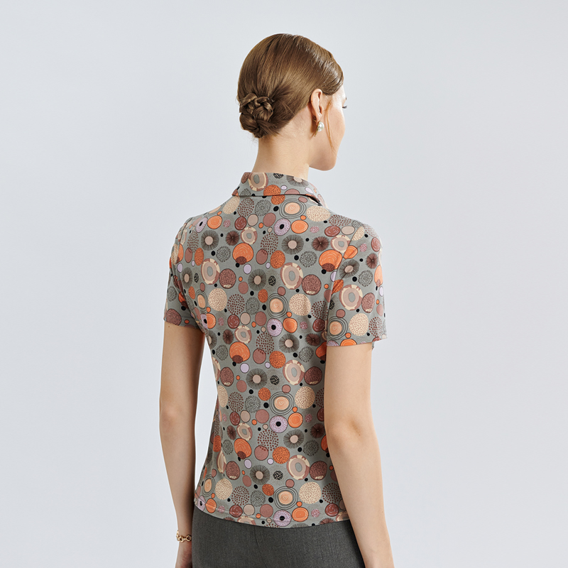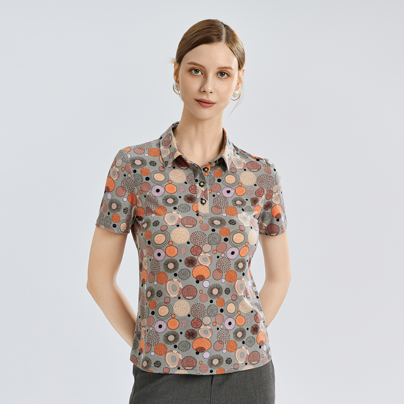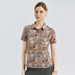 女宽松中老年妈妈上衣百搭小衫 衬衫 印花POLO领短袖 香沐兰2025夏季