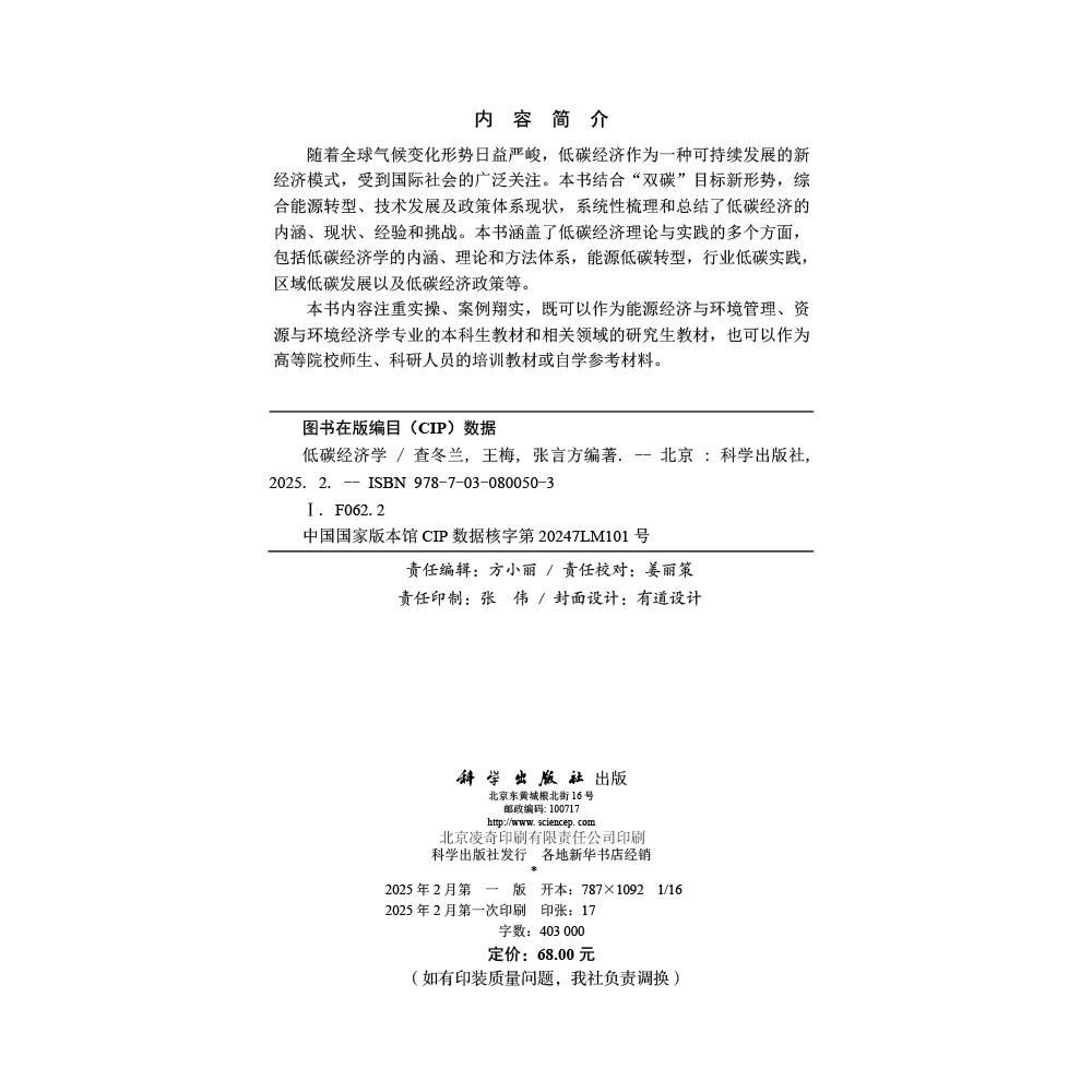 区域低碳发展以及低碳经济政策等 社 查冬兰 编著 能源低碳转型 张言方 低碳经济学 王梅 科学出版 行业低碳实践 现货正版