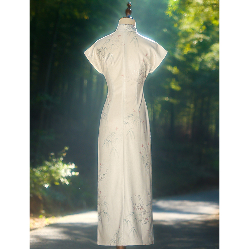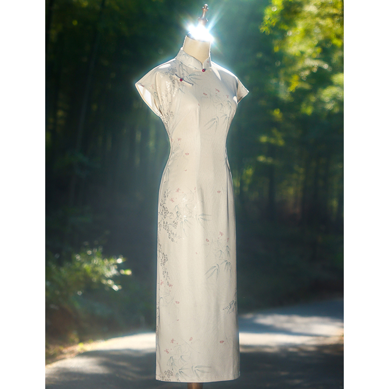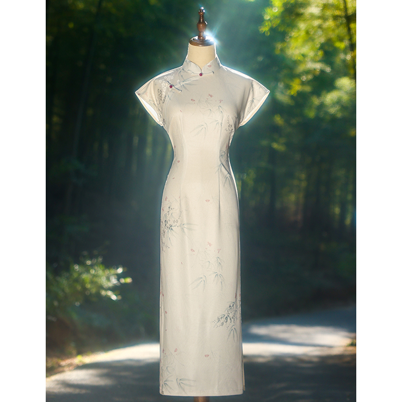 国风气质长裙灰色收腰包臀裙子 连衣裙女装 2025新中式 旗袍提花短袖