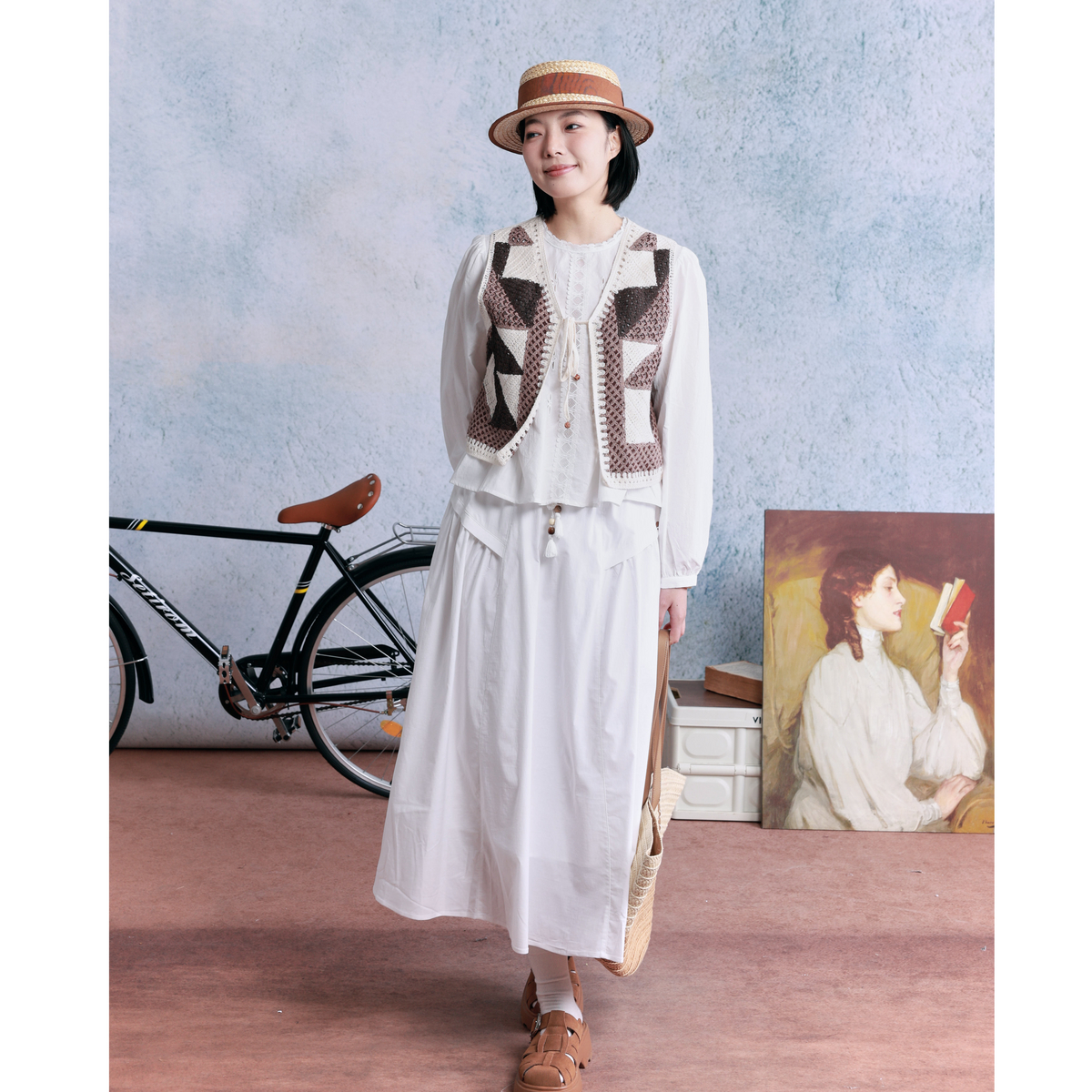 款 四季 肩膀褶皱上衣女 衬衫 花概念双层棉纱新疆100棉文艺休闲长袖