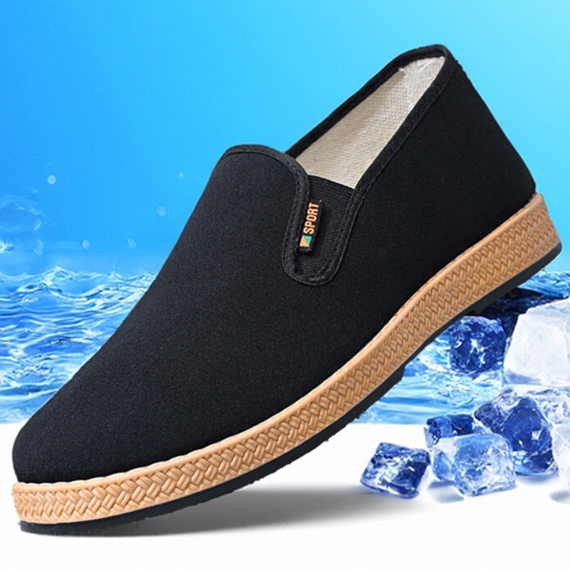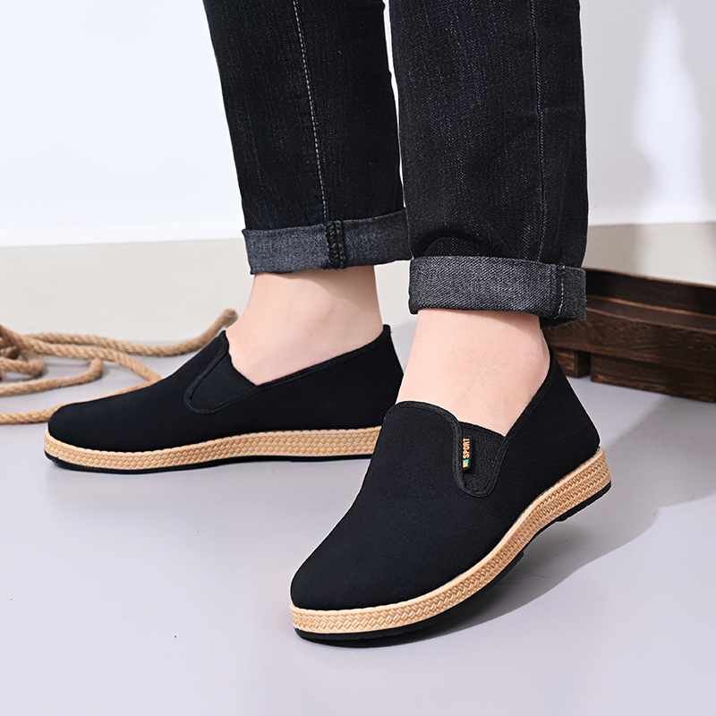 男夏防滑运动鞋 老北京布鞋 布鞋 透气休闲防臭一脚蹬黑布鞋 手工 男款