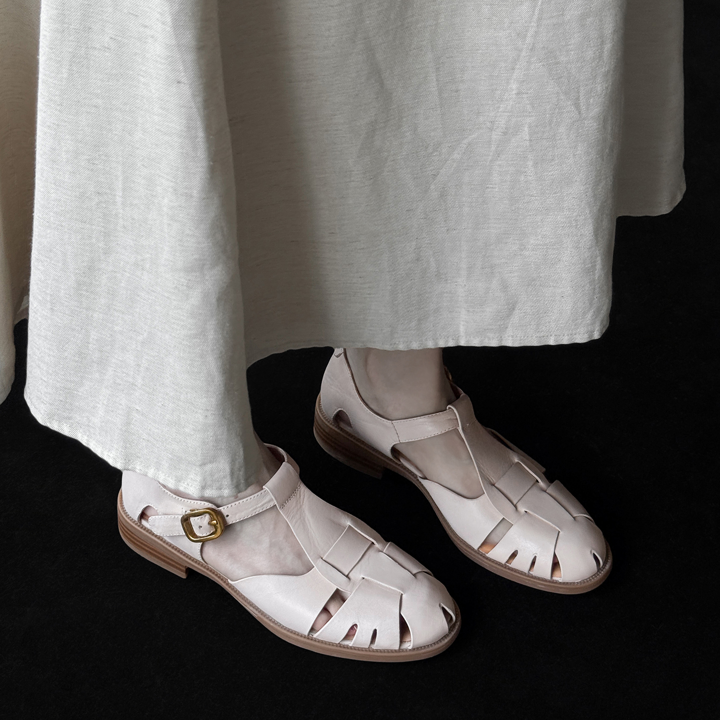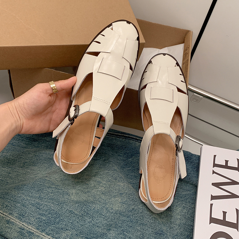复古编织镂空罗马凉鞋 粗跟真皮 女夏小众设计低跟手工2025新款