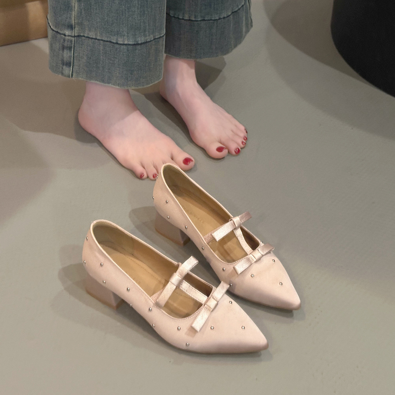 配裙子浅口单鞋 女2025春夏新款 高跟鞋 内增高尖头水钻粗跟玛丽珍鞋