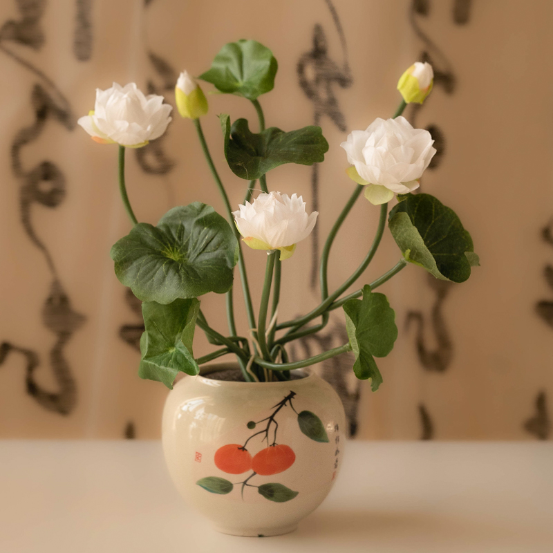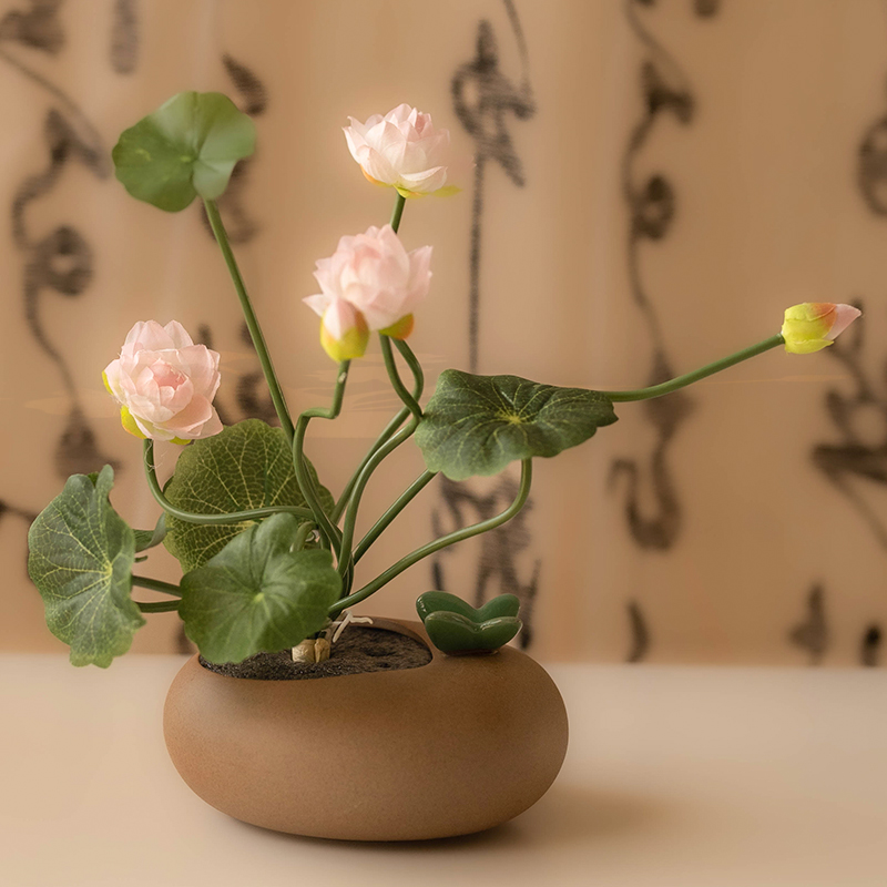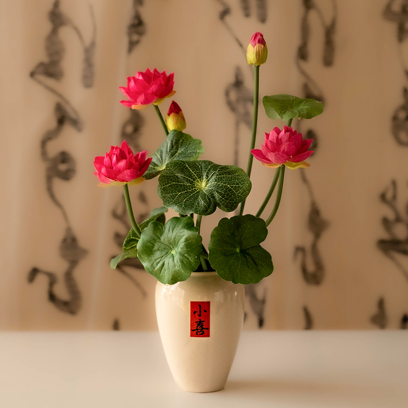 喜莱卡仿真花荷花假花绢花客厅装 饰花艺 饰餐桌摆设花小莲花家居装