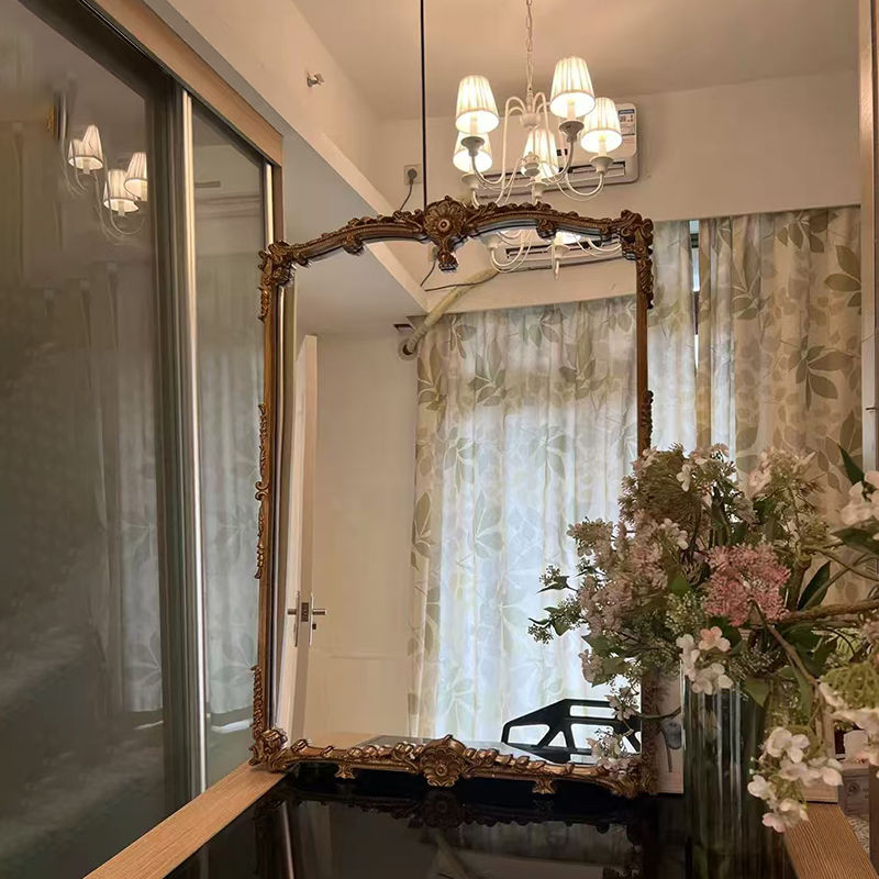 浴室镜壁挂 壁炉化妆镜洗手间欧式 法式 雕花梳妆镜挂墙复古镜子美式