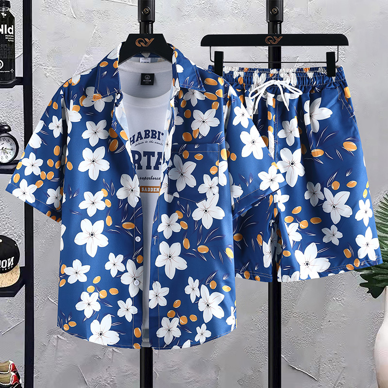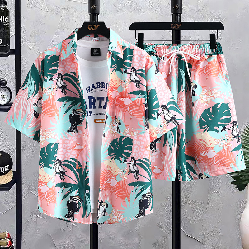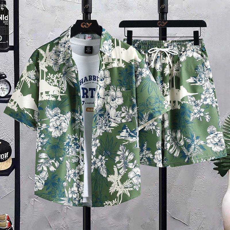 三亚旅行穿搭高级感夏威夷套装 冰丝速干花短裤 沙滩裤 海边度假男士