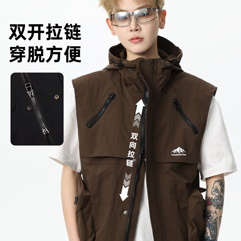 新款 男装 多口袋工装 坎肩外套胖子加肥加大大码 无袖 连帽马甲男秋季