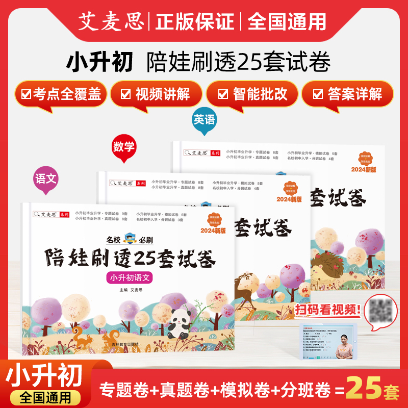 艾麦思2025年小升初陪娃刷透25套试卷人教版 语文数学英语名校冲刺六年级升初中模拟冲刺卷真题卷子分班卷必刷题毕业总复习资料大全