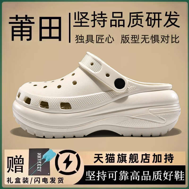 外穿增高厚底小个子防滑沙滩包头拖鞋 夏季 男女2025新款 光轮洞洞鞋
