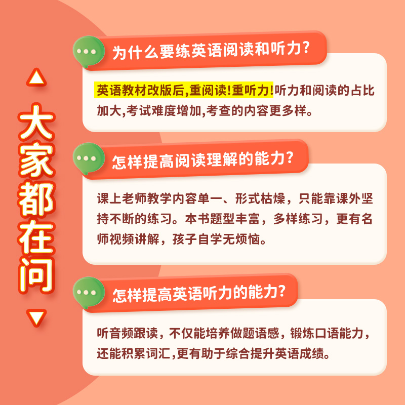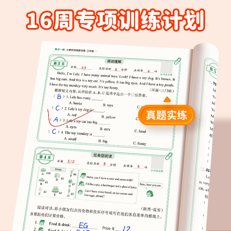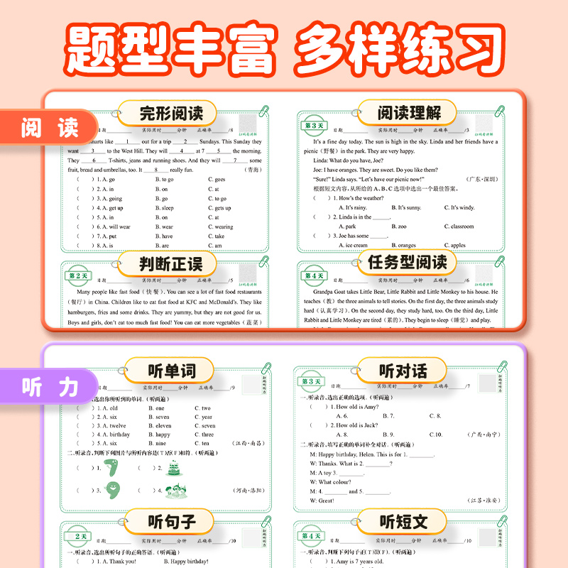 阅读理解专项训练听力练习每日一练三四五六年级听力磨耳朵阅读技巧天天练小升初英语考点提升训练练习册 易蓓图书