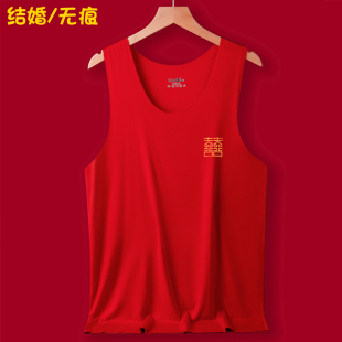 新郎礼物 打底内衣内裤 结婚大红色双喜无痕背心男士 莫代尔冰丝薄款