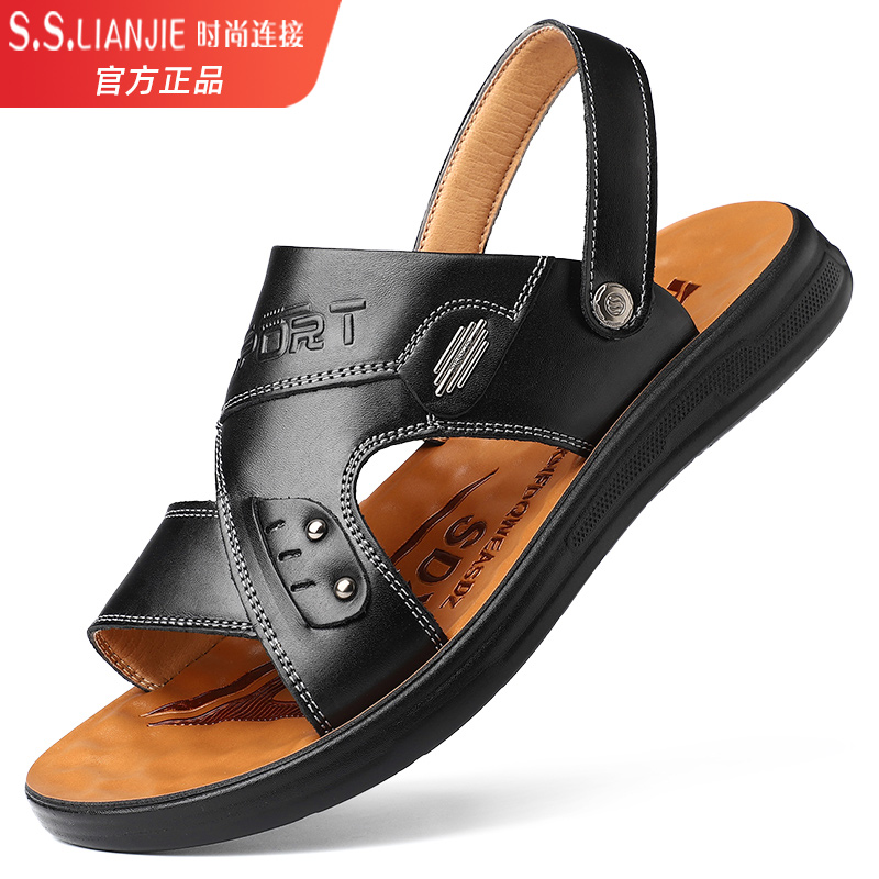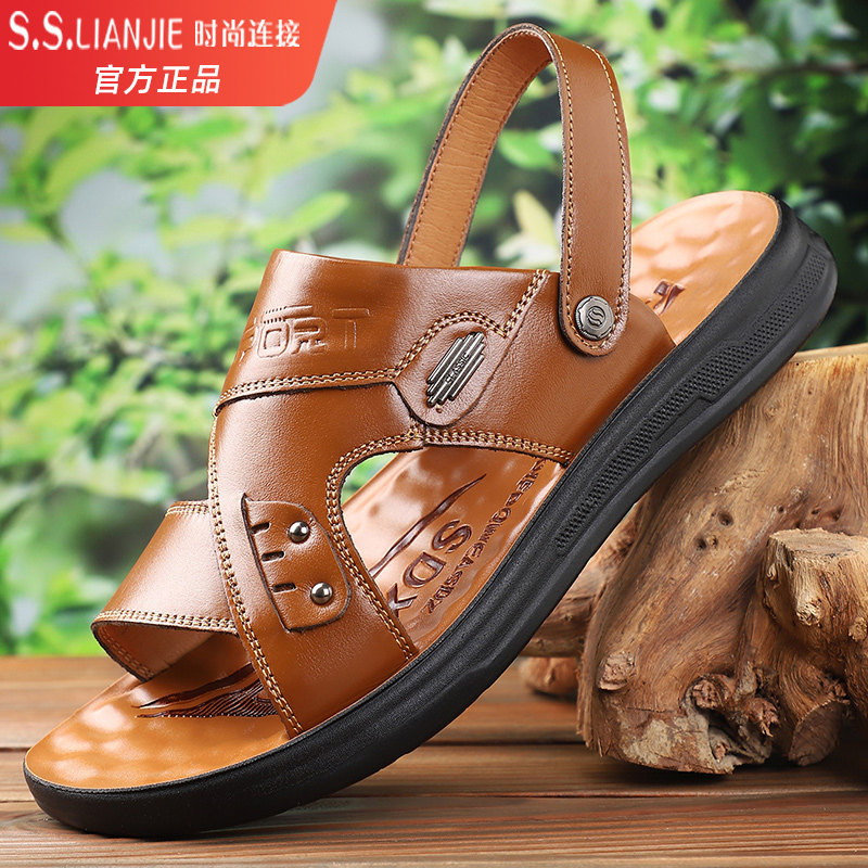沙滩鞋 两用软底透气耐磨男鞋 男款 2025新款 真皮防滑防臭凉拖鞋 男士