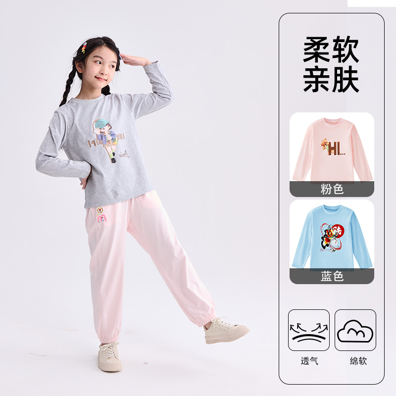 上衣女孩童装 女大童春装 T恤儿童纯棉打底衫 巧比童女童长袖
