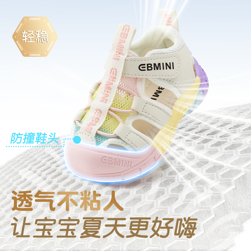 软底宝宝鞋 英贝米尼轻稳儿童凉鞋 女童包头沙滩鞋 2025新款 子男 夏季