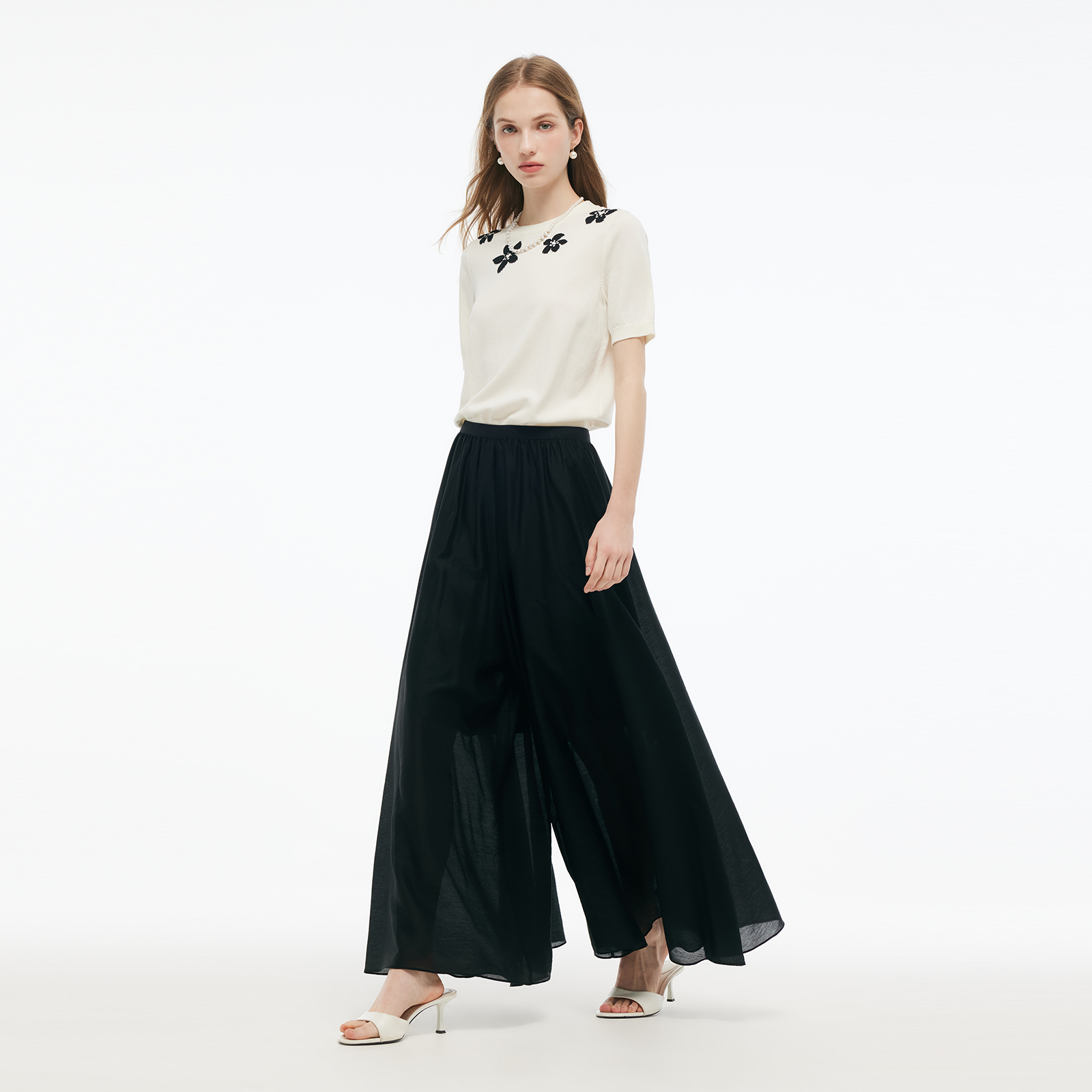 度假穿搭半身裙天丝裤 松弛感阔腿裤 裙 女夏2025新款 歌莉娅黑色裙裤