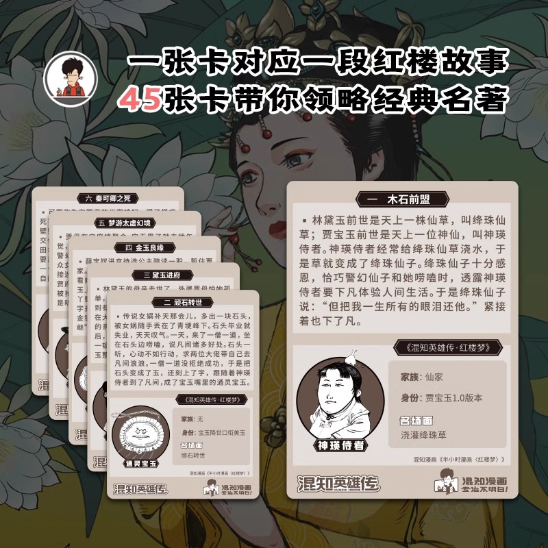 卡牌 英雄传系列红楼梦闪卡知识卡牌无需抽卡人物集换卡可以边玩边学 每张卡牌含有知识点既可以收集学习亲子互动 混知官方