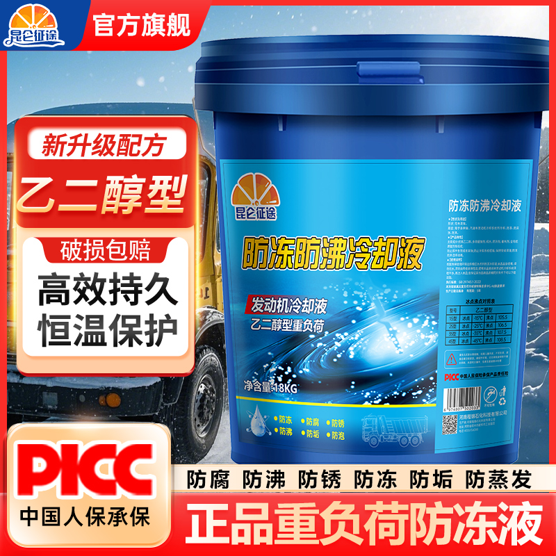 昆仑征途发动机防冻液18KG高浓度防冻液冬天冷却液四季 通用大桶装