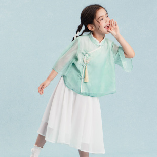 荷香艺梦儿童短袖 女男童夏小学生三字经弟子规演出服 汉服国学服装
