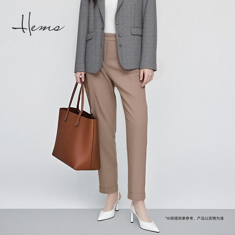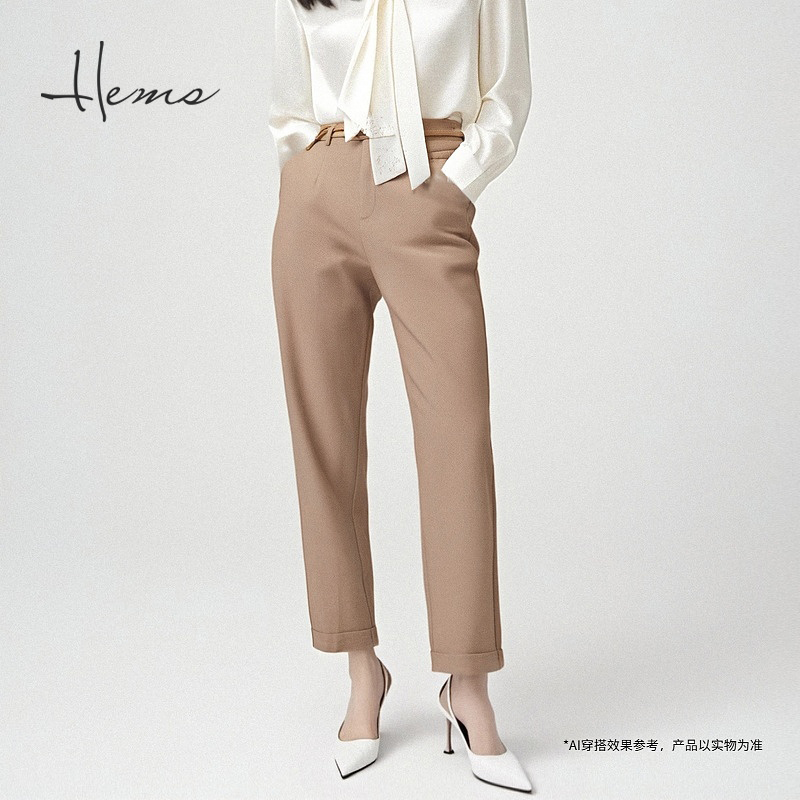 海尔曼斯25春夏休闲通勤知性自然腰显腿直直筒长裤 女D0613D95