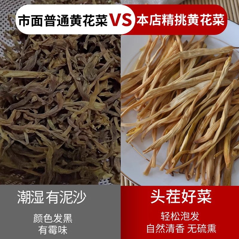 黄花菜干货500g 新鲜农家新货大同特产无硫金针菜火锅煲汤商用 包邮