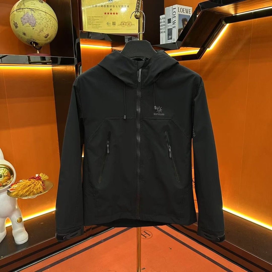 骆驼运动外套女秋季 黑色连帽风衣外套户外登山防水防风薄绒夹克男