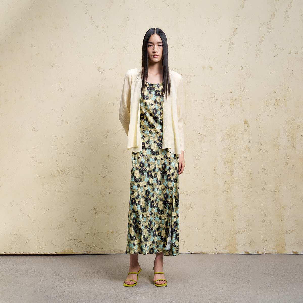 轻松感气质优雅显白绿意印花吊带连衣裙 BLUE轻奢优雅女装
