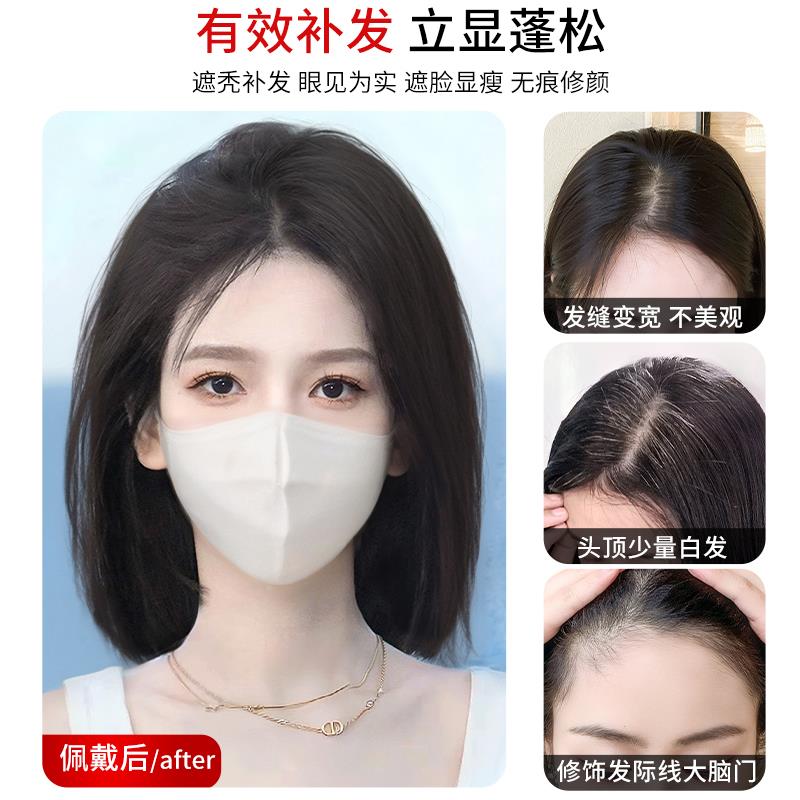 递针假发女片头顶真发自然增发量蓬松高颅顶遮白发轻薄无痕补发片